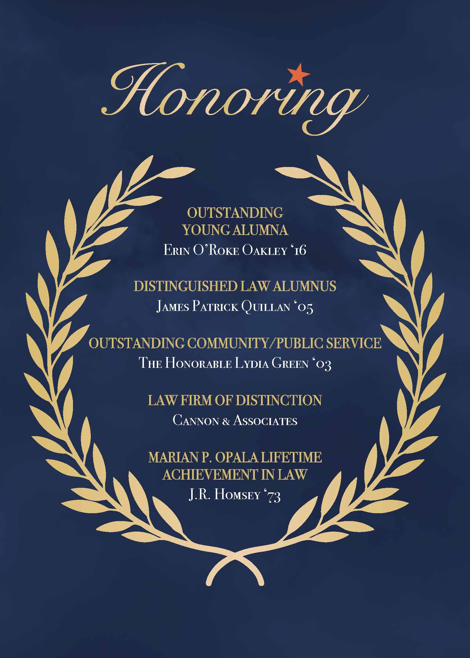 The OCU Law Alumni Association invites all OCU Law alumni and friends to its annual awards gala.
